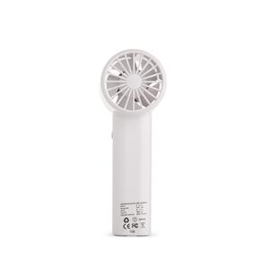Descrição: Mini ventilador recarregável em plástico e metal. Possui controle de velocidade ajustado por botões frontais, acionamento por chave seletora e painel de LED que exibe níveis de velocidade e carga da bateria. Acompanha cabo USB-C e cordão em nylon. Largura 5,5 cm Medidas aproximadas para gravação(CxL): 6,5 cm x 2 cm Peso aproximado(g): 129 Espessura 5,5 cm Altura 15,9 cm