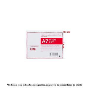 Descrição: Expositor Porta-Retratos A7 feito em poliestireno com placa acrílica. Largura 11,1 cm Medidas aproximadas para gravação(CxL): 7,4 cm x 10,5 cm Peso aproximado(g): 44 Profundidade 3,7 cm Altura 7,7 cm