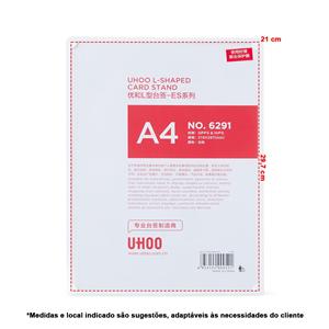 Descrição: Expositor Porta-Retratos A4 feito em poliestireno com placa acrílica. Largura 22,2 cm Medidas aproximadas para gravação(CxL): 29,7 cm x 21 cm Peso aproximado(g): 284 Profundidade 10,8 cm Altura 28,9 cm