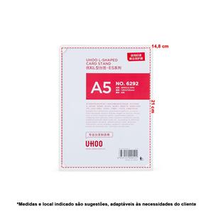 Descrição: Expositor Porta-Retratos A5 feito em poliestireno com placa acrílica. Largura 16 cm Medidas aproximadas para gravação(CxL): 21 cm x 14,8 cm Peso aproximado(g): 134 Profundidade 8 cm Altura 21 cm