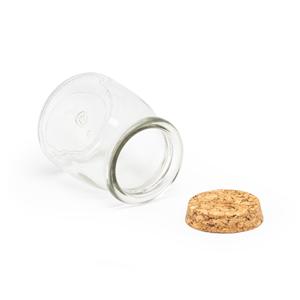 Descrição: Frasco de vidro com capacidade de 200ml, tampa de cortiça. Largura 7 cm Medidas aproximadas para gravação(CxL): 4 cm x 3 cm Peso aproximado(g): 157 Circunferência 22 cm Altura 9 cm