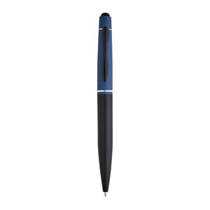 Descrição: Caneta esferográfica em alumínio com clipe de metal. A caneta esferográfica tem mecanismo twist, ponteira touch e escrita em azul até 1,5 km. Fornecida com bolsa presente em cartão. ø12 x 136 mm | Bolsa: 155 x 40 mm