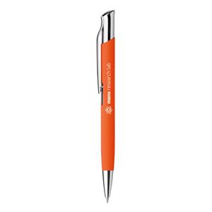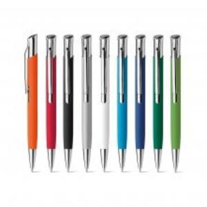 Descrição: Esferográfica em alumínio com acabamento emborrachado e clipe. ø10 x 137 mm