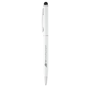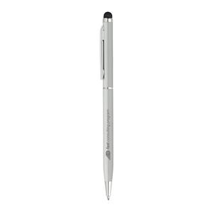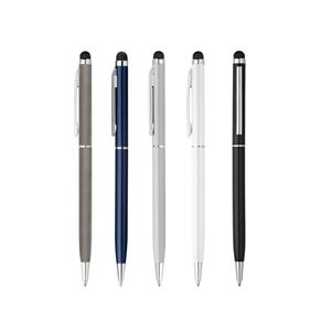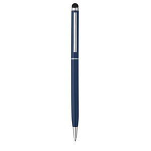 Descrição: Esferográfica em alumínio com mecanismo twist, ponteira touch e clipe de metal. Escrita em azul até 1,5 km. ø8 x 135 mm