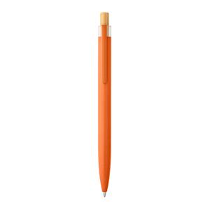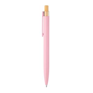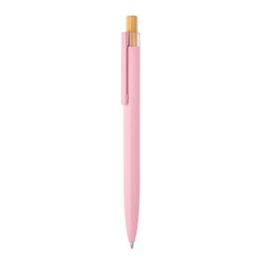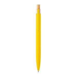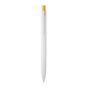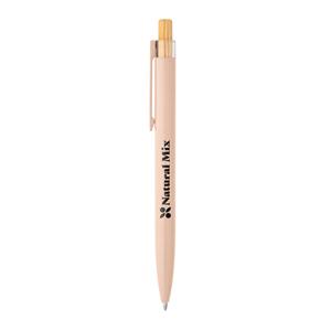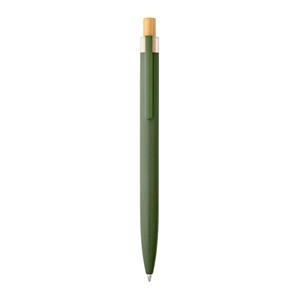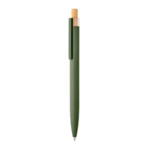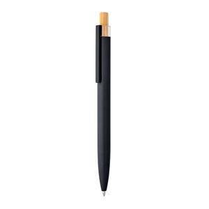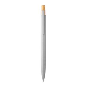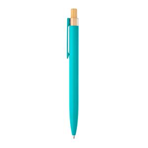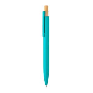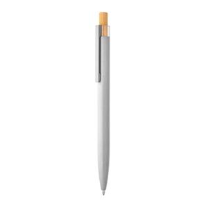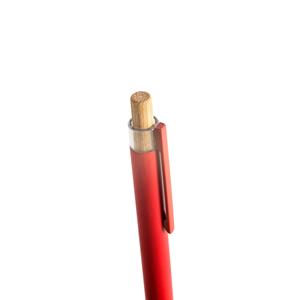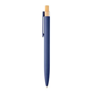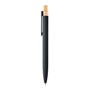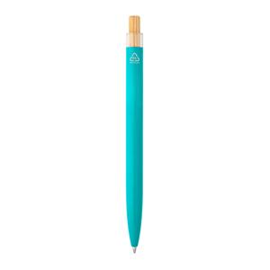 Descrição: Esferográfica com corpo em alumínio 100% reciclado, topo em Pet 100% reciclado, botão em bambu e clipe de metal. Escrita em azul até 1,5 km. A cor e o resultado da impressão nos materiais naturais pode variar entre produtos. ø10 x 140 mm