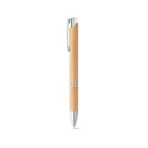 Descrição: Caneta esferográfica em bambu com clipe de metal. Escrita em azul até 1,5 km. A cor e o resultado da impressão nos materiais naturais pode variar entre produtos. ø11 x 141 mm