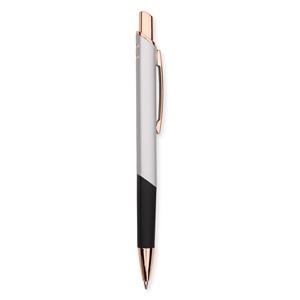 Descrição: Caneta feita inteiramente em metal com acionamento por clique e carga esferográfica azul de 1,0mm. Largura 1,4 cm Medidas aproximadas para gravação(CxL): 0,5 cm x 5 cm Peso aproximado(g): 17 Comprimento 14 cm
