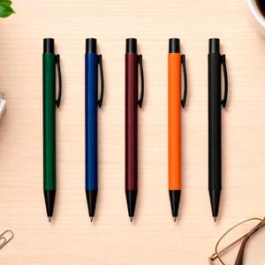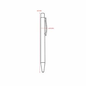 Descrição: Caneta metálica com acionamento por clique e clip feitos em plástico. Conta ainda com carga esferográfica azul de 1,0 mm. Largura 1,5 cm Medidas aproximadas para gravação(CxL): 0,7 cm x 10 cm Peso aproximado(g): 13 Altura 13,9 cm