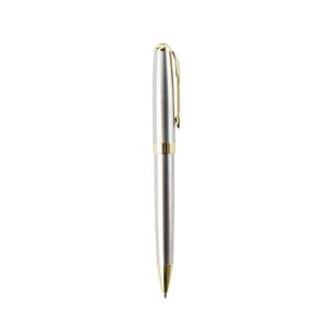 Descrição: Caneta metálica com acionamento por rotação e carga esferográfica azul de 1.0mm. Largura 1,6 cm Medidas aproximadas para gravação(CxL): 0,8 cm x 6 cm Peso aproximado(g): 28 Comprimento 13,8 cm
