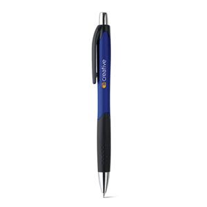 Descrição: Esferográfica em ABS com grip, acabamento brilhante e ponteira cromada. Escrita em azul até 1,5 km. Produto certificado de acordo com a portaria Inmetro nº423 de 8/out/2021. ø10 x 138 mm