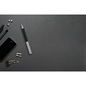 Descrição: Caneta esferográfica em metal com mecanismo twist e clipe de metal. Escrita em preto até 1,5 km. Incluso embalagem de veludo. ø11 x 138 mm | Embalagem de veludo: 160 x 30 mm