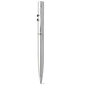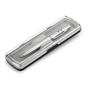 Descrição: Esferográfica em metal. com ponteira laser e LED. Incluso 3 pilhas LR41. Até 1,5 km de escrita. Fornecida em estojo com forro de veludo. ø10 x 131 mm | Estojo: 170 x 50 x 20 mm