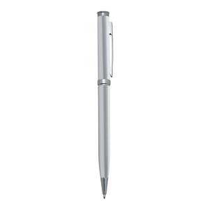Descrição: Caneta metálica com carga esferográfica azul 1.0 mm e acionamento por rotação. Largura 1,1 cm Medidas aproximadas para gravação(CxL): 4,5 cm x 0,7 cm Peso aproximado(g): 19 Comprimento 13,7 cm