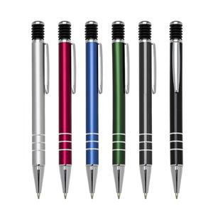 Descrição: Caneta metálica com carga esferográfica azul e acionamento por clique. Medidas aproximadas para gravação(CxL): 4,2 cm x 1 cm Peso aproximado(g): 19 Tamanho total aproximado (CxL): 14,2 cm x 1,5 cm