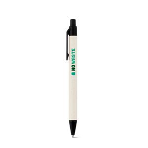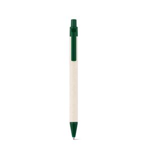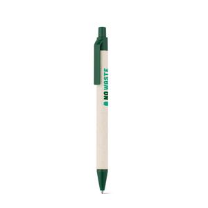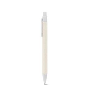 Descrição: Esferográfica produzida através de pacotes de leite reciclados, contribuindo para o reaproveitamento do cartão e alumínio. Corpo em cartão e componentes coloridos em ABS 100% reciclado. Escrita em azul até 1,5 km. ø10 x 139 mm