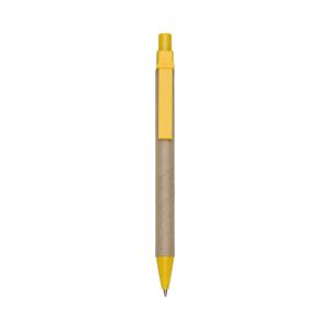 Descrição: Caneta de papelão com detalhes plásticos, carga esferográfica azul 1.0 mm e acionamento por clique. Largura 1,5 cm Medidas aproximadas para gravação(CxL): 3,7 cm x 0,7 cm Peso aproximado(g): 6 Altura 14 cm