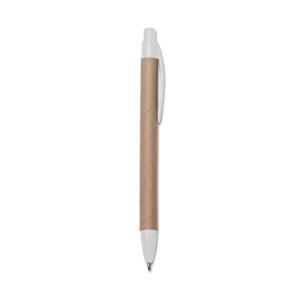 Descrição: Caneta de papelão com detalhes plásticos, carga esferográfica azul 1.0 mm e acionamento por clique. Largura 1,4 cm Medidas aproximadas para gravação(CxL): 4 cm x 1 cm Peso aproximado(g): 6 Comprimento 13,9 cm