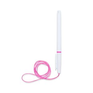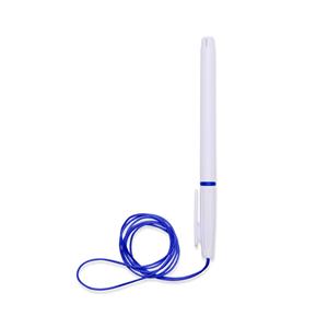 Descrição: Caneta com estrutura inteiramente em plástico e carga esferográfica azul de 1,0mm. Acompanha cordão em nylon de aproximadamente 42cm de comprimento amarrada na tampa. Largura 1 cm Medidas aproximadas para gravação(CxL): 0,8 cm x 8 cm Peso aproximado(g): 7 Comprimento 14,2 cm Circunferência 4,9 cm