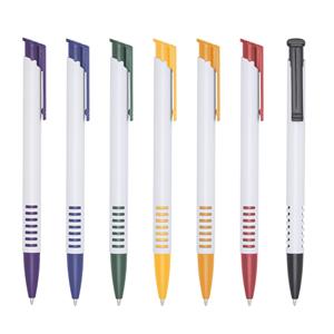 Descrição: Caneta de Plástico com carga esferográfica azul 1.0 mm e acionamento por clique. Medidas aproximadas para gravação(CxL): 3 cm x 0,7 cm Peso aproximado(g): 6 Tamanho total aproximado (CxL): 13,8 cm x 1,2 cm