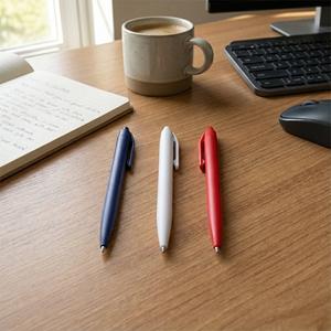 Descrição: Caneta feita inteiramente em plástico. Conta com acionamento em por clique e carga esferográfica azul de 1.0mm. Largura 1,4 cm Medidas aproximadas para gravação(CxL): 0,8 cm x 8 cm Peso aproximado(g): 5 Altura 13,7 cm