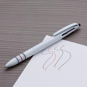 Descrição: Caneta de Plástico 3 em 1 com touch screen, cargas esferográficas 1.0 mm nas cores: azul, preto e vermelho. Largura 1,4 cm Medidas aproximadas para gravação(CxL): 4 cm x 0,7 cm Peso aproximado(g): 11 Comprimento 14,9 cm