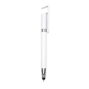 Descrição: Caneta de Plástico com suporte para celular e ponteira touch screen. Carga esferográfica azul 1.0mm e acionamento por rotação. Largura 1,4 cm Medidas aproximadas para gravação(CxL): 4 cm x 0,8 cm Peso aproximado(g): 9 Comprimento 14 cm