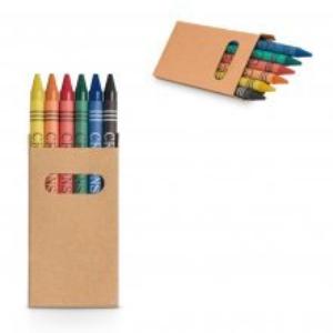 Descrição: Caixa de papel kraft reciclado com 6 gizes de cera. Produto certificado de acordo com a portaria Inmetro nº423 de 8/out/2021. 53 x 92 x 9 mm