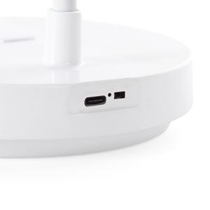 Descrição: Luminária articulável em led recarregável e funcionamento touch, material plástico. Contém três estágios de iluminação com regulagem de intensidade touch: luz fria (branca), luz quente (amarela) e luz mista (branca e amarela). Base com botão para ligar e desligar. Acompanha uma bateria de lítio e cabo USB Tio-C para carregamento. Largura Base 12,7 cm Medidas aproximadas para gravação(CxL): Base 5 cm x 4,6 cm - Topo 4 cm x 3 cm Peso aproximado(g): 278 Comprimento Base 12,8 cm Espessura Base 2,6 cm Altura Aberto 40cm