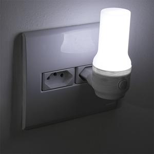 Descrição: Luminária de tomada de estrutura plástica, iluminação em LED e voltagem de 220V, oferecendo luz ao ambiente com baixo consumo de energia. Conta ainda com um botão que permite alternar entre as tonalidades amarela e branca. Largura 4,4 cm Medidas aproximadas para gravação(CxL): 4 cm x 2 cm Peso aproximado(g): 35 Espessura 8,6 cm Altura 9,8 cm