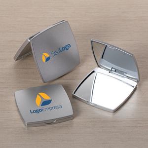 Descrição: Espelho duplo sem aumento com moldura plana de bordas arredondadas feita em plástico. Largura 6,7 cm Medidas aproximadas para gravação(CxL): 6 cm x 6 cm Peso aproximado(g): 39 Comprimento 6,7 cm Espessura 0,9 cm