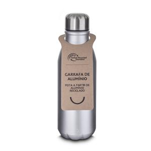 Descrição: Garrafa 600ml em alumínio reciclado. Largura 6,5 cm Medidas aproximadas para gravação(CxL): 10 cm x 3 cm Peso aproximado(g): 90 Circunferência 20,7 cm Altura 22 cm