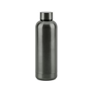 Descrição: Garrafa em aço inox 90% reciclado de parede dupla térmica, isolada a vácuo. Garrafa com acabamento em mate metálico. Capacidade até 550 mL. Fornecido em caixa presente de papel kraft reciclado. Certificação EU Food Grade. ø73 x 222 mm