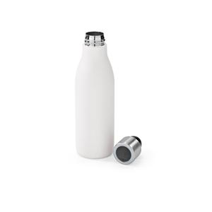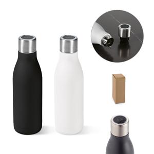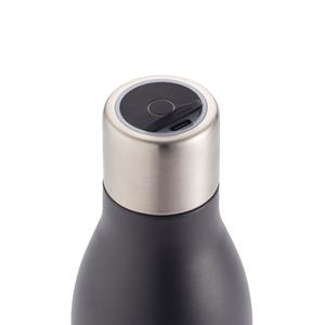 Descrição: Garrafa em aço inox 90% reciclado de parede dupla térmica, isolada a vácuo. Garrafa com sistema de auto-sanitização UV que inativa vírus e bactérias que estejam na sua garrafa, tornando a sua bebida mais segura. Capacidade até 500 mL. Preserva as bebidas quentes por 5h e frias por 15h, aproximadamente. Fornecido em caixa presente de papel kraft reciclado. Certificação EU Food Grade. ø72 x 243 mm | Caixa: 78 x 270 x 78 mm