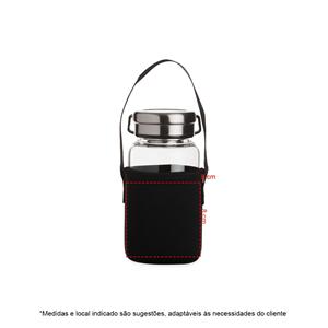 Descrição: Garrafa de vidro borossilicato com capacidade de 650ml, acompanha peneira infusora e capa de neoprene com alça para transporte. Tampa de alumínio com alça para transporte. Largura 8,6 cm Medidas aproximadas para gravação(CxL): 9 cm x 4 cm Peso aproximado(g): 350 Tamanho total aproximado (CxL): Diâmetro bocal 5,2 cm Circunferência 26,9 cm Altura 17,1 cm