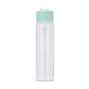 Descrição: Garrafa de vidro 330ml com tampa plástica e alça de algodão para transporte. Largura 5,5 cm Medidas aproximadas para gravação(CxL): 3 cm x 14 cm Peso aproximado(g): 215 Tamanho total aproximado (CxL): Diâmetro sem tampa 3,8 cm Circunferência 17,3 cm Altura 21 cm