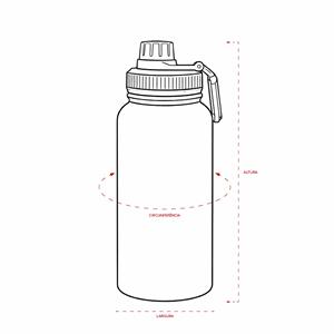 Descrição: Garrafa térmica em inox com pintura eletrostática e capacidade de até 1 litro. Possui estrutura de parede dupla e isolamento a vácuo, permitindo a conservação de temperatura do líquido por mais tempo, além de evitar vazamentos. Possui tampa plástica rosqueável com proteção de coval e alça em formato retangular. Largura 9 cm Medidas aproximadas para gravação(CxL): 15 cm x 9 cm Peso aproximado(g): 425 Tamanho total aproximado (CxL): Diâmetro bocal: 5,5 cm Circunferência 28,5 cm Altura 25,5 cm