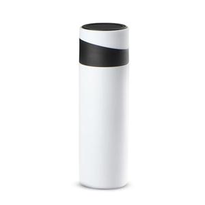 Descrição: Garrafa térmica em aço inox com parede dupla 400 ml. Tampa rosqueável com apoio para celular. Largura 6,3 cm Medidas aproximadas para gravação(CxL): 13 cm X 3 cm Peso aproximado(g): 257 Circunferência 20,7 cm Altura 21,3 cm