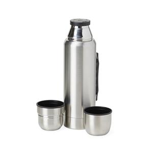 Descrição: Garrafa térmica de inox com parede dupla e tampa dupla, capacidade de 1 litro. Com alça plástica para transporte, a garrafa contém duas tampas utilizáveis como copos. Largura 10,6 cm Medidas aproximadas para gravação(CxL): 21 cm x 5 cm Peso aproximado(g): 659 Tamanho total aproximado (CxL): Diâmetro sem tampa 4,9 cm Circunferência 29,8 cm Altura 35,7 cm