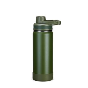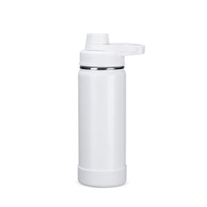 Descrição: Garrafa térmica em inox com pintura eletrostática e capacidade de até 550ml. Mantém a temperatura de líquidos por mais tempo graças à estrutura de parede dupla e ao isolamento a vácuo. Possui tampa plástica rosqueável com protetor de bocal e alça fixa. Acompanha protetor removível em silicone para a base. Largura 7,4 cm Medidas aproximadas para gravação(CxL): 14 cm x 7 cm Peso aproximado(g): 290 Tamanho total aproximado (CxL): Diâmetro: 5,5 cm Circunferência 23,3 cm Altura 22,5 cm