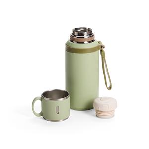 Descrição: Garrafa térmica em inox com pintura eletrostática e capacidade de até 600ml. Possui estrutura de parede dupla e tampa interna rosqueável com anel de vedação, abertura do bocal por botão de acionamento e infusor. Conta ainda com tampa externa em formato de caneca e alça emborrachada para transporte. Largura 9,3 cm Medidas aproximadas para gravação(CxL): 13 cm x 8 cm Peso aproximado(g): 382 Circunferência 26 cm Altura 22,2 cm