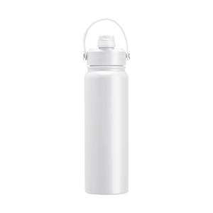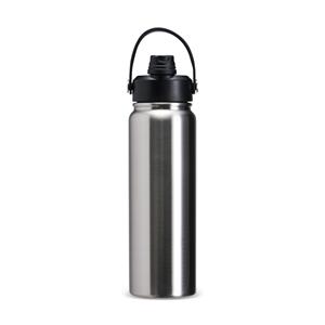 Descrição: Garrafa térmica em inox com pintura eletrostática e capacidade máxima de 800ml. Possui estrutura interna de parede dupla em inox 304 e vedação a vácuo que permite a manutenção de temperatura de líquidos por mais tempo. Possui tampa rosqueável feita em plástico com proteção para o bocal, bico flip, canudo interno removível e alça fixa maleável para transporte. Largura 8,2 cm Medidas aproximadas para gravação(CxL): 18 cm x 8 cm Peso aproximado(g): 414 Circunferência 25,1cm Altura 28 cm