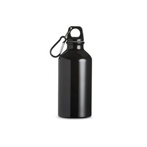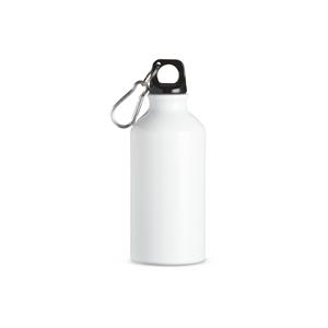 Descrição: Squeeze de alumínio com capacidade de 420ml com tampa plástica rosqueável. Acompanha mosquetão. Largura 6,6 cm Medidas aproximadas para gravação(CxL): 10 cm x 3 cm Peso aproximado(g): 65 Tamanho total aproximado (CxL): Diâmetro bocal 2,3 cm Circunferência 20,5 cm Altura 17,6 cm