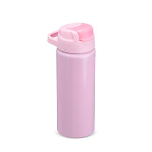 Descrição: Squeeze de alumínio com capacidade máxima de 600ml. Possui tampa rosqueável em plástico com alça para transporte, protetor de bocal, bico flip top e canudo interno em plástico. Largura 7 cm Medidas aproximadas para gravação(CxL): 12 cm x 6 cm Peso aproximado(g): 117 Circunferência 22 cm Altura 20,5 cm