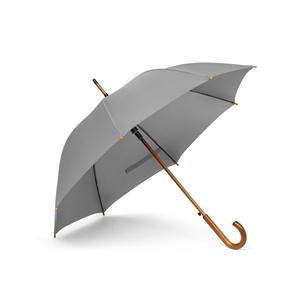 Descrição: Guarda-chuva em poliéster pongee 190T, com varetas em fibra de vidro, pega e haste em madeira. O guarda-chuva tem abertura automática. ø1040 x 885 mm