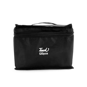 Descrição: Kit com 120 canetas marcadoras feitas em plástico com pontas duplas: uma fina e outra chanfrada. Acompanham bolsa com alça e fechamento em zíper para transporte. Largura 21 cm Medidas aproximadas para gravação(CxL): 14 cm x 2 cm (parte frontal bolsa) - 7 cm x 0,5 cm (cada caneta) Peso aproximado(g): 1600 Tamanho total aproximado (CxL): Caneta: 15,2 cm x 1,6 cm Profundidade 13,5 cm Altura 16cm