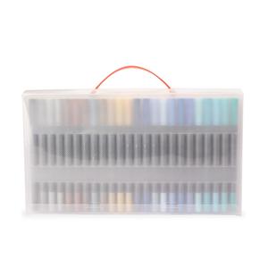 Descrição: Kit com 72 canetinhas coloridas de pontas duplas: uma fina e outra em formato de pincel. Cada canetinha possui corpo leve em plástico e tinta à base de água, livre de odores e atóxica. Acompanha estojo plástico com fechamento em botões e alça para transporte. Medidas aproximadas para gravação(CxL): 9 cm x 29 cm (estojo do kit) - 0,5 cm x 7 cm (canetinha) Peso aproximado(g): 610 Tamanho total aproximado (CxL): Caneta: 16 cm x 1 cm Profundidade 4 cm Comprimento 30,5 cm Altura 17 cm