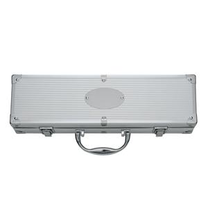 Descrição: Kit churrasco 4 peças em maleta de alumínio com travas de segurança, contém: espátula, pegador, garfo e faca em inox. Parte interna da maleta com revestimento em tnt e suportes de velcro para fixação das peças. Largura 6,9 cm Medidas aproximadas para gravação(CxL): 3,5 cm x 6 cm Peso aproximado(g): 987 Comprimento 38 cm Altura 13,1 cm