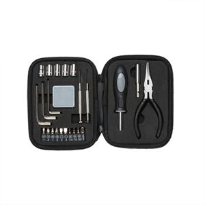 Descrição: Kit ferramenta 24 peças em estojo de couro sintético. Possui: 5 extensores bocais(6MM, 7MM, 8MM, 9MM e 10MM), 3 tamanhos de chave Allen, trena de 1 metro(sem trava), 1 chave Philips, 1 chave Fenda, conjunto 10 pontas(4 chaves phillips, 2 chaves fenda, 3 chaves torx e um adaptador), chave auxiliar, chave que alonga ferramenta e alicate. Estojo de couro sintético com zíper e parte interna revestida de espuma. Medidas aproximadas para gravação(CxL): 13,5 cm x 10 cm Peso aproximado(g): 396 Tamanho total aproximado (CxL): 16,5 cm x 12,8 cm