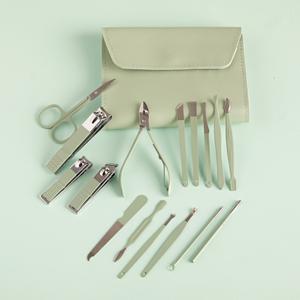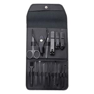 Descrição: Kit manicure 16 peças em estojo de couro sintético estilo envelope, contém: tesoura, alicate de cutícula, pinça, 3 cortadores de unha, lixa, 2 bisturis, raspador, empurrador de cutícula, removedor de cutícula, espátula dupla para limpeza das unhas, limpador de ouvido, palito de unha e espátula para ouvido. Largura 13,8 cm Medidas aproximadas para gravação(CxL): 4 cm x 10 cm Peso aproximado(g): 185 Comprimento 10,7 cm Espessura 1,6 cm