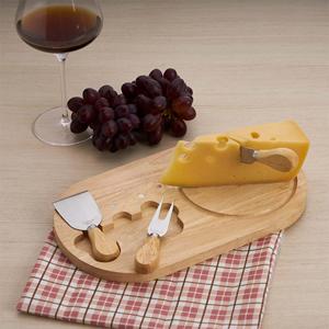 Descrição: Kit queijo 4 peças, contém: tábua de madeira com canaleta, faca com ponta, garfo e espátula. Tábua com imã para encaixe e fixação dos utensílios. Largura 32,1 cm Medidas aproximadas para gravação(CxL): Tábua 12 cm x 12 cm - Cabo 2 cm x 2,5 cm Peso aproximado(g): 613 Espessura 1,6 cm Altura 18,7 cm